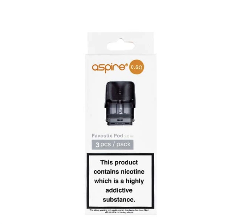This is a pack of 3 replacement pods to fit the Aspire Favostix pod device only. With a 2ml capacity, the Favostix replacement pods feature integrated coils and are available with either a built-in 0.6-ohm mesh coil or a 1.0-ohm mesh coil.