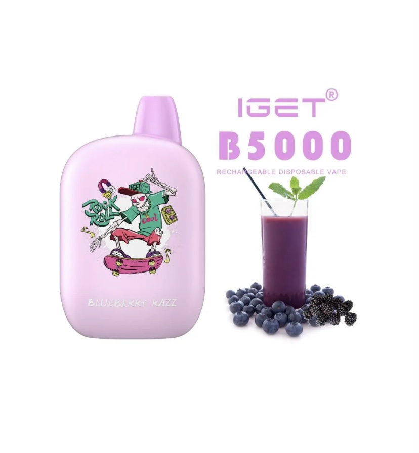 The Blueberry Razz IGET B5000 is a sweet and tangy blend of blueberries and raspberries that invigorates the senses with every puff.