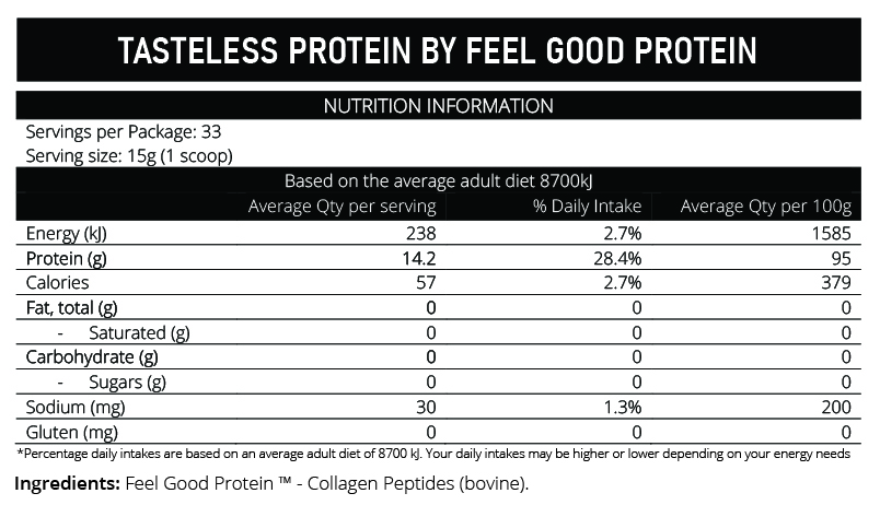 Tasteless Protein by Feel Good Protein® is completely tasteless when mixed with water and 99.9% of all foods and drinks! Unlike other ‘unflavoured’ proteins, Tasteless Protein will not change the taste or texture of food even under cooking temperatures.