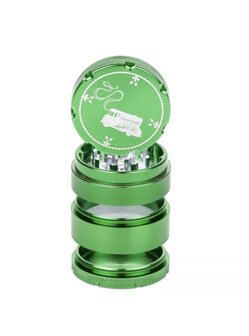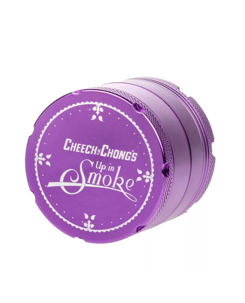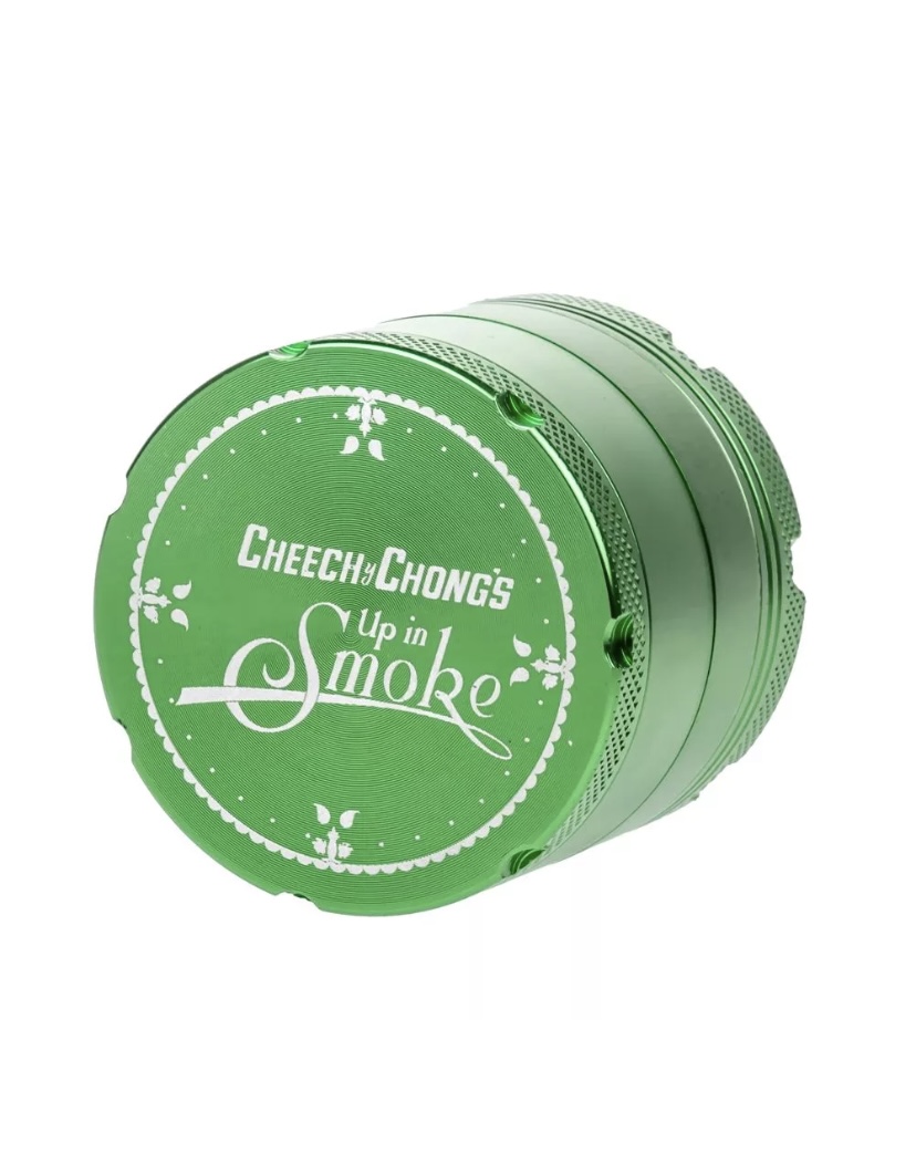 This solid Cheech & Chong 4-part grinder is made entirely out of CNC (computer numeric controlled) aluminum and measures 5 cm / 2 inches across. The pocket size grinder is equipped with sharp, diamond-shaped teeth that effortlessly shred your favorite dry herbs into a fluffy, more manageable consistency.