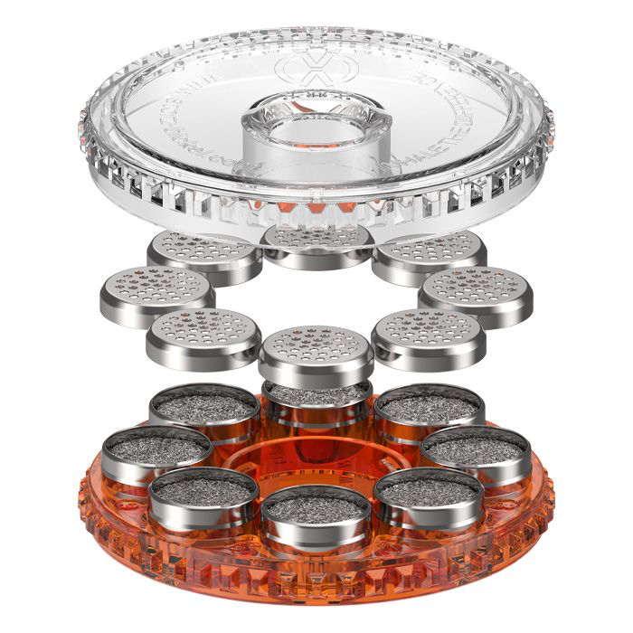 The Dosing Capsules with Filling Pads can be stored in the Magazine. The Filling Pad can be used as “gap filler” in order to avoid small amounts of herbs swirling around in the Dosing Capsule. In addition, the Filling Pad can also be used as a carrier of very finely ground herbs so that the small particles don’t fall through the holes of the Dosing Capsule.