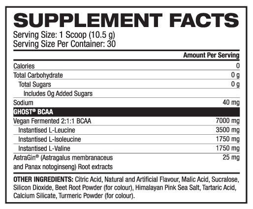 BCAA V2 by Ghost is a phenomenal performance alternative to unhealthy, sugary sports drinks or juices by delivering 7g Vegan Fermented 2:1:1 BCAAs in every scoop.
