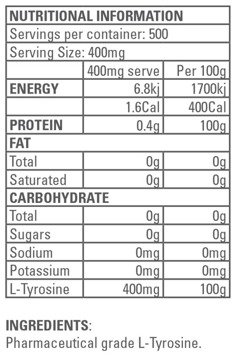 GEN-TEC Tyrosine is a 100% pure pharmaceutical grade L-Tyrosine powder that helps enhance cognitive function and boosts concentration levels. L-Tyrosine may also help with thyroid and metabolism function. Tyrosine is a non-essential amino acid that can help improve focus, energy and motivation when there are stressful situations or during prolonged exercise. Increase your alertness with GEN-TEC Tyrosine!