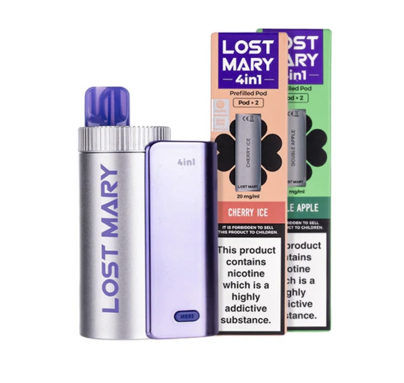 - Lost Mary 4 in 1 Device: Compact and portable, this kit houses an 850mAh rechargeable battery and 4 replaceable pre-filled pods.