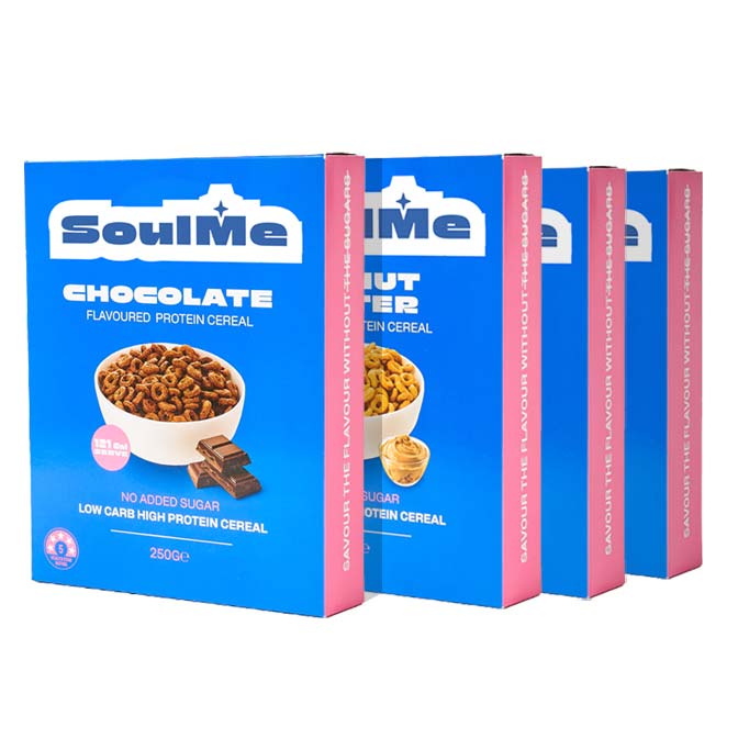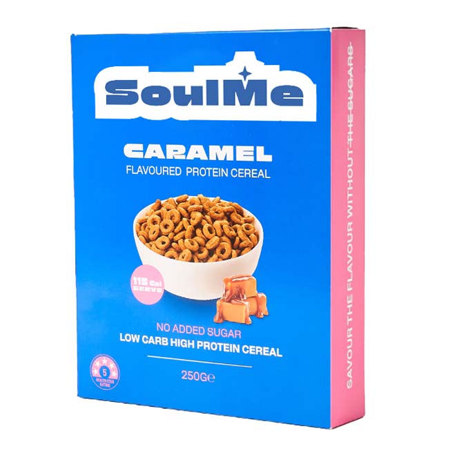 Choose from 4 enjoyable flavours including Chocolate, Caramel, Peanut Butter and Cinnamon. There’s a flavour to satisfy every tastebud. Start your mornings the right way with Low Carb High Protein Cereal by SoulMe.