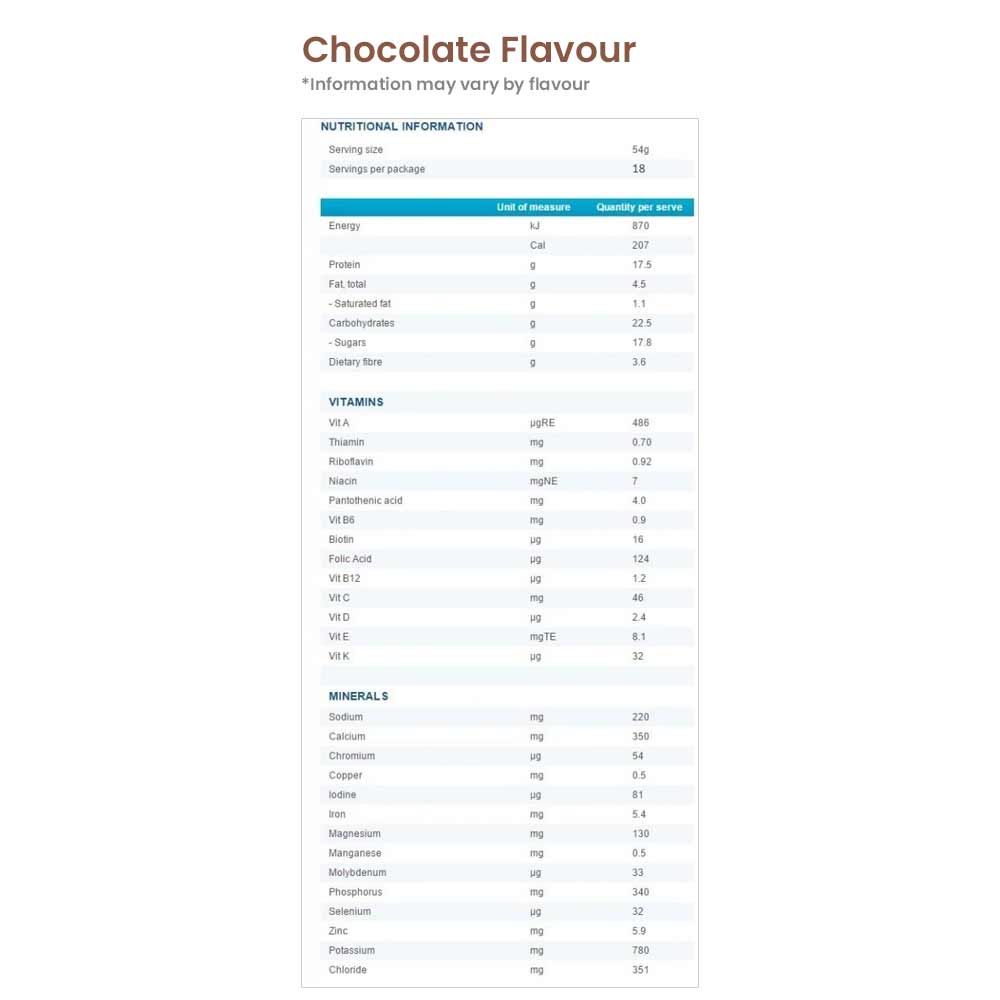 Very Low Calorie Diets (VLCD’s) should only be implemented where rapid weight loss is required for optimal health and wellbeing with the recommendation and supervision of medical professionals. This product is not suitable for pregnant or lactating women, infants, children, adolescents and the elderly.