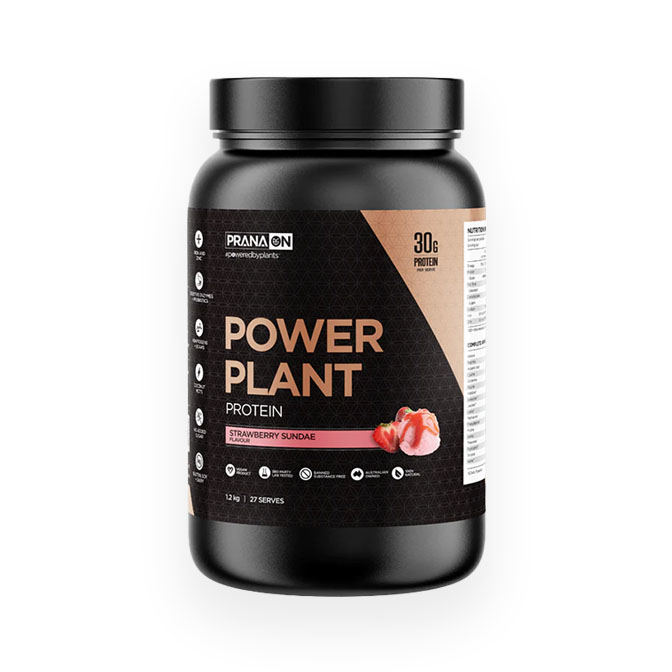 Power Plant Protein combines three plant-based proteins: golden pea, finely milled rice, and Australian-grown Fababean which contains 9 essential amino acids. The blend is enhanced with branched-chain amino acids, probiotics, digestive enzymes, medium-chain triglycerides (MCTs), and adaptogens. A gut-friendly protein blend that may support peak performance, body composition changes, and optimum recovery.