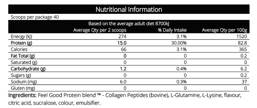 Both brands in this sample pack have huge benefits to your health, by having enough protein this ensures your skin, muscles, nails, hair and other vital parts of your body have important nutrients to stay healthy. Feel Good Protein is made with the highest quality Collagen, sourced from Germany and manufactured here in Australia while Protein Perfection is made with the highest quality amino acids blend to deliver immediate absorption into your body.