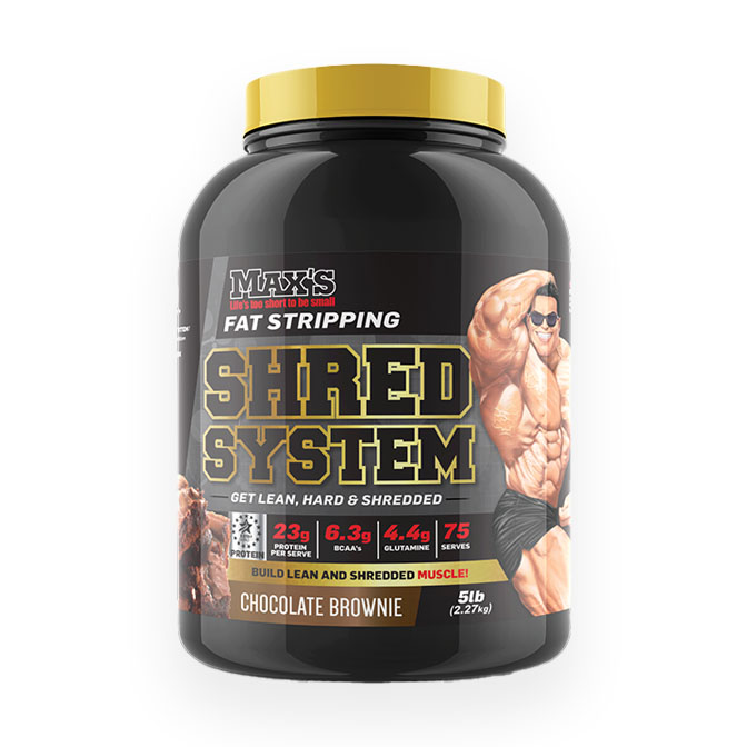 Max’s Shred System is a protein powder designed for those who want to loose some body fat as well as get ripped! It does this in two steps. First, using a sequence of carb blockers and fat burners, Shred System helps burn up fat and prevent its build up as well. Next, Shred System also provides a quality anabolic protein blend – an essential nutrient promoting muscle growth, which the body naturally burns through over time with its calorie needs. This awesome formula will help you build lean shredded muscle and burn fat! It’s packed with the latest in lean nutrition science, like the unique lean protein blend, fat incinerating complex, and nitrogen retention technology.