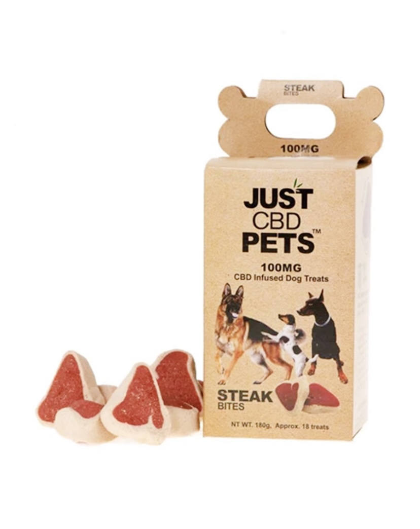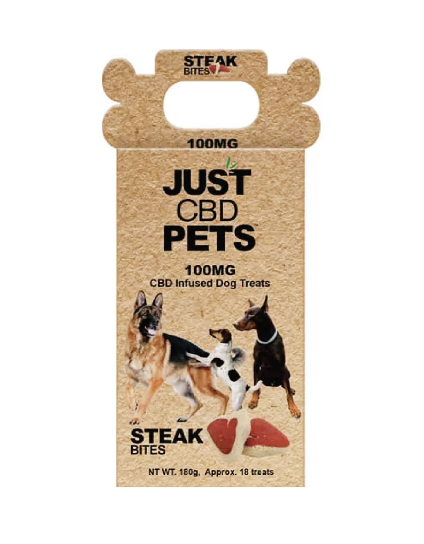 Reward your furry friend with Steak Bites Just CBD Dog Treats 100mg – a delicious and potentially beneficial treat infused with pure CBD isolate.