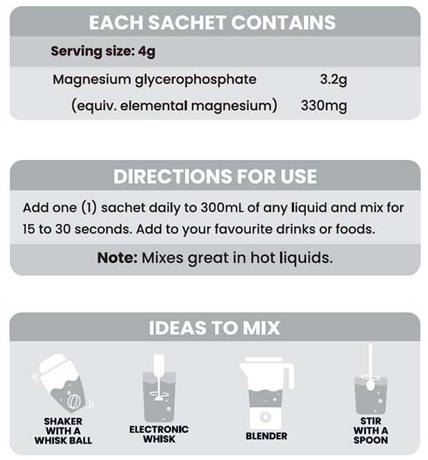 Our Tasteless Magnesium 3-serve pack allows you to try this tasteless, convenient and easy to mix, magnesium powder that you can add to any of your favourite food or drinks!