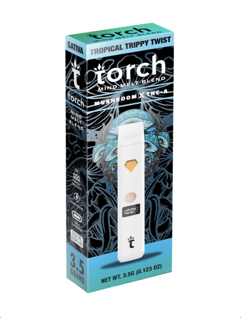 Embark on a surreal and euphoric adventure with the Tropical Trippy Twist Torch Mind Melt Mushroom x THC-A Blend White Series Vape 3.5G. With its potent psychedelic effects, tantalizing tropical flavor profile, and premium quality ingredients, this vape blend offers a one-of-a-kind experience that will leave you craving more.