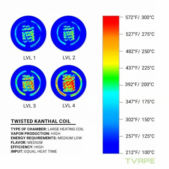 Using both Triple Titanium and Twisted Kanthal coils, the Utillian 5 produces thick clouds and great flavor.