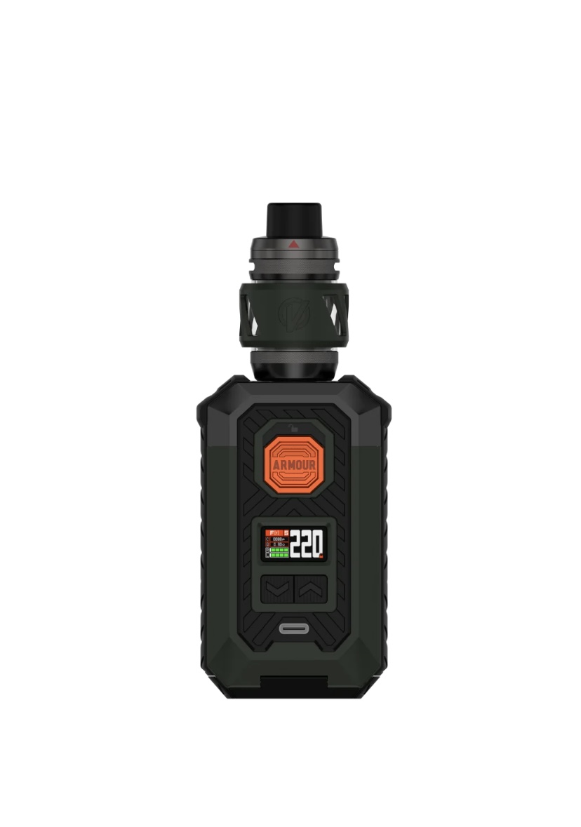The Armour S kit features the Armour S 100w mod, manufactured from tough-wearing TPU material, increasing its durability and resistance to being dropped or scratched and providing reassurance in the palm of your hand.