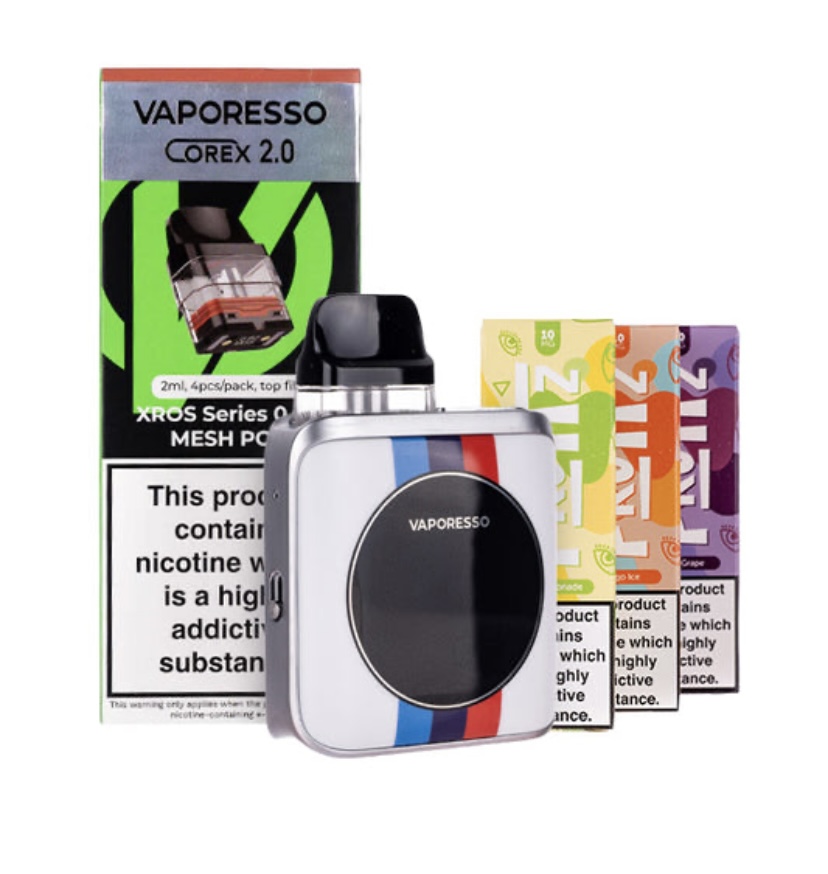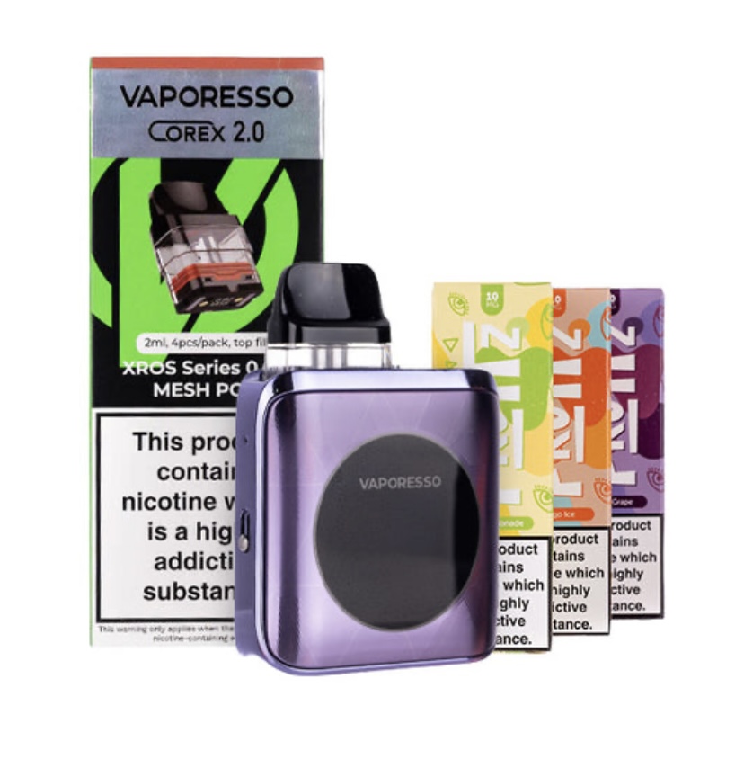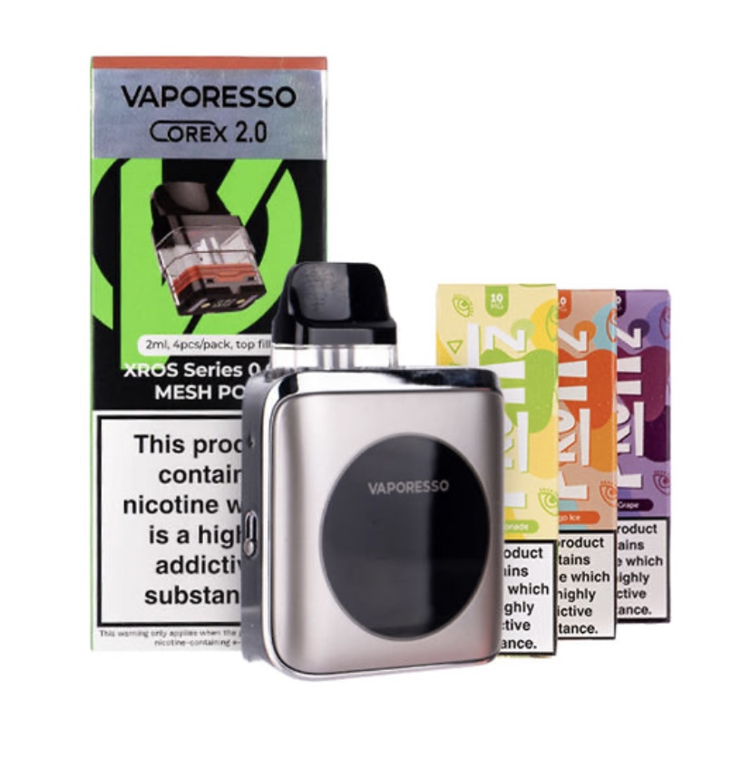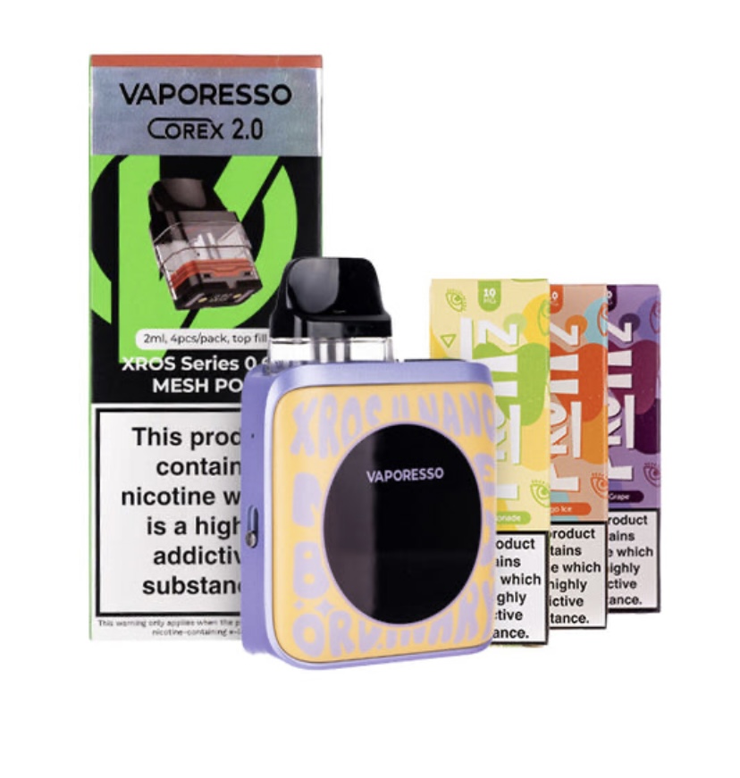 Discover the Vaporesso XROS 4 Nano Pod Kit Bundle, and embrace cost effective and eco-friendly vaping. This bundle includes the eye-catching XROS 4 Nano Pod Kit, 1 pack of Corex 2.0refillable pods and 3 Fruitz nic salt e-liquids, giving you everything you need for 20% less!
