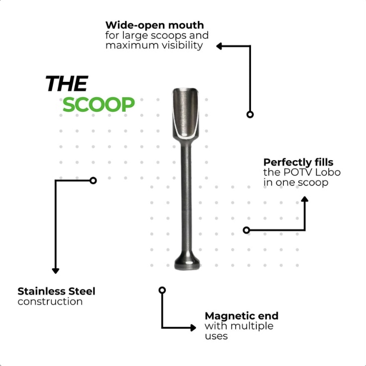 Pack the perfect session with The Scoop! This stainless steel scoop is designed with a wide-mouth shovel for efficient loading and maximum visibility and a flat end to tamp your loads.