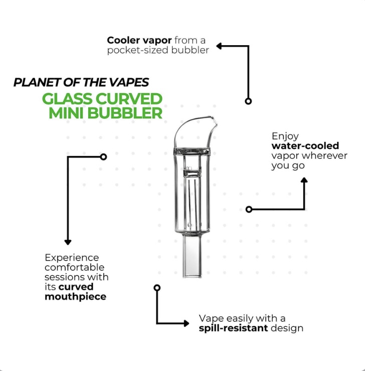 We’ll also set you off on the right foot with our POTV Curved Mini Bubbler. Cool your sessions anywhere with its pocketable, spill-resistant design and comfortable curved mouthpiece.