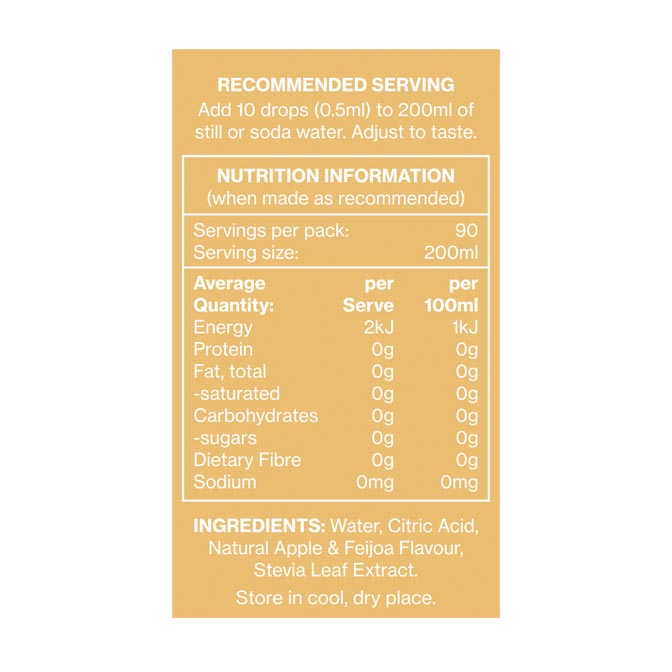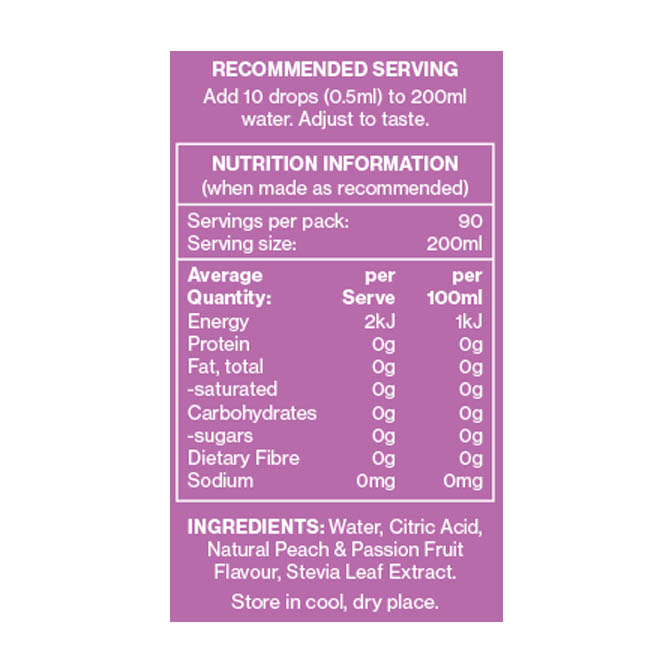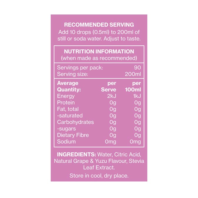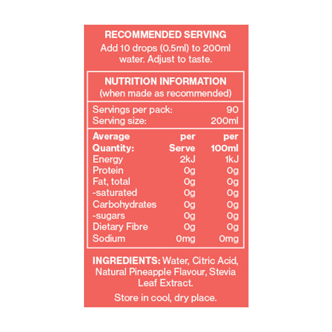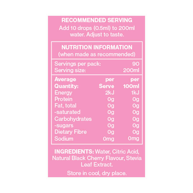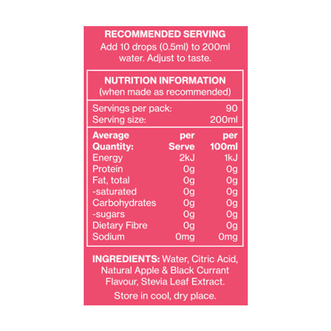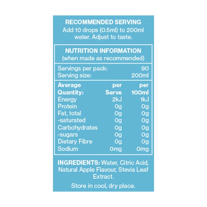 Each bottle offers 90 servings, ensuring you stay hydrated wherever you go, without the need for refrigeration. Just add 10 drops to a glass of water (adjust to your taste), and experience a burst of refreshing flavours.